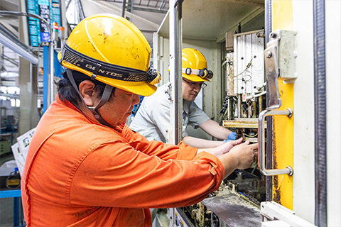 安全第一。みんなで声をかけ合いながら仕事を進める職場です。品質の高い製品を作ることに誇りを持って、チームで協力しながら働いています。