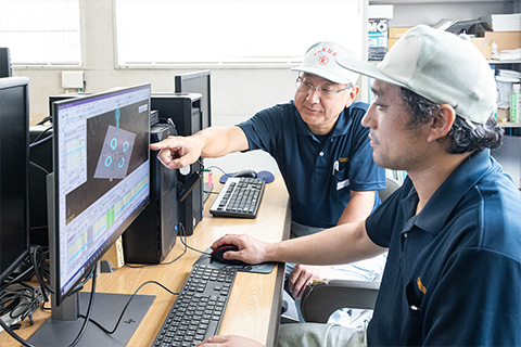 NC旋盤・マシニングセンターなど機械を使った加工、手作業による調整、図面の見方や工具の使い方など、少しずつ覚えていける仕事です。